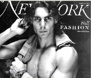 奧運(yùn)會網(wǎng)球男子單打新科冠軍納達(dá)爾成為時尚界的新寵。他赤裸上身大展肌肉,成為即將于本月25日出版的美國時尚雜志《紐約》雜志男女雙刊男子部分的封面人物,與他對應(yīng)的女子部分的封面人物則是前名?死锼沟佟げ剂挚死