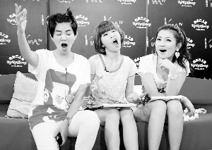 S.H.E和某網站合作的網路電臺將在10月17日播出最后一集,日前三人抽空去進行此集的節(jié)目錄影。Ella綁了個搞笑小辮子;Hebe則一改酷勁,頻在鏡頭前扮丑;Selina就首度放下飄逸長發(fā)耍性感。近來頻頻在節(jié)目中“語不驚人死不休”的S.H.E,在末集都不改“話癆”風格,Ella大爆自己有腸躁癥,出門在外常常是走到哪拉到哪;有潔癖的Hebe正好相反,擔心外面的廁所不干凈,總是憋到回家才“解放”。