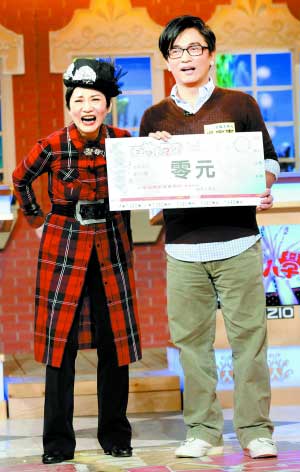 吳宗憲第一題就答錯(cuò),獎(jiǎng)金零元,主持人張小燕氣得拿起板子敲打他。