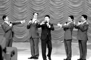 昨晚,央視2009年元宵晚會(huì)如期播出。由于是錄播,所以“我最喜歡的春節(jié)聯(lián)歡晚會(huì)節(jié)目”評(píng)選也已提前揭曉,《不差錢(qián)》拿下小品類一等獎(jiǎng),劉謙也奪得曲藝類一等獎(jiǎng)(本報(bào)昨日已報(bào)道)。在元宵晚會(huì)上,小沈陽(yáng)和劉謙的名字反復(fù)被眾多明星提及,而劉謙、朱軍更是模仿小沈陽(yáng)的音調(diào),引來(lái)陣陣笑聲。