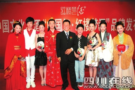 “天上掉下個林妹妹!似一朵輕云剛出岫。只道他腹內(nèi)草莽人輕浮,卻原來骨格清奇非俗流!弊蛉障挛2時,在成都某五星級酒店會議大廳,四川宜賓紅樓夢酒業(yè)集團隆重舉行了全國“紅樓夢酒”發(fā)布會。著名制片人李小婉率新版《紅樓夢》寶、黛、釵、妙玉、探春、襲人等龐大明星陣容,身穿“戲裝”首次亮相成都,為“紅樓夢酒”推廣造勢。