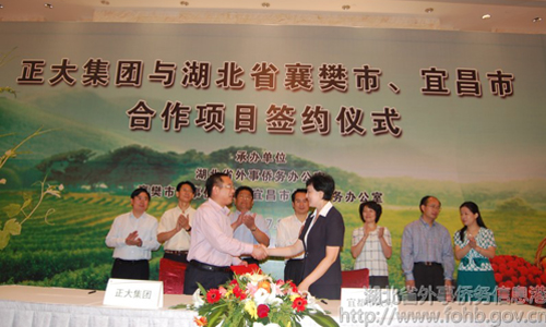 湖北省政府副秘書(shū)長(zhǎng)譚天星,湖北省外僑辦主任馬黎、湖北省人民對(duì)外友好協(xié)會(huì)會(huì)長(zhǎng)邵元洲、襄樊市市委常委副市長(zhǎng)楊緒春、宜昌市政府副市長(zhǎng)吳靜,正大集團(tuán)農(nóng)牧食品企業(yè)中國(guó)區(qū)副董事長(zhǎng)何炎光先生以及襄樊市外僑局、宜昌市外僑辦、襄陽(yáng)區(qū)政府、宜都市政府、正大集團(tuán)其他領(lǐng)導(dǎo)等出席了簽約儀式。