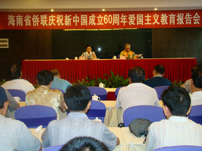 中新網(wǎng)9月9日電 9月2日,海南省僑聯(lián)在?谑忻廊A荷泰酒店舉辦“慶祝新中國成立60周年愛國主義教育報告會”,報告會由海南省僑聯(lián)黨組書記、主席何云霞主持,邀請海南省委黨校(省行政學(xué)院、省社會主義學(xué)院)黨委副書記、省行政學(xué)院院長、省委黨校副校長廖遜主講,省僑聯(lián)、省僑聯(lián)下屬社團(tuán)、?诘貐^(qū)僑聯(lián)干部50多人參會。(海南僑聯(lián))