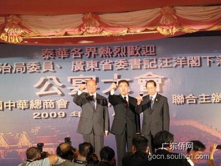 汪洋書記回顧了歷史上各個時期泰國華僑華人對中國革命和建設的貢獻。他說,廣大旅居泰國的華僑華人,充分發(fā)揚中華民族勤勞勇敢,艱苦奮斗的優(yōu)秀品質和聰明才智,白手起家,克勤克儉,歷盡艱辛,經(jīng)過不懈努力,在政治、經(jīng)濟、文化、教育等領域取得了輝煌的成就。廣大僑胞的歷史是一部忠貞不渝的愛國史,廣大僑胞的歷史也是一部與所在國民眾和睦相容的友好史,多年來廣大旅泰僑胞在開拓創(chuàng)業(yè)的同時,不忘回饋社會,積極參與當?shù)亟ㄔO,與泰國人民共存共榮,已經(jīng)和諧地融入了當?shù)氐纳鐣,為泰國?jīng)濟、文化的發(fā)展和社會進步做出了重要的貢獻,得到了泰國人民的贊許和肯定,并為中泰兩國的友好往來與交流合作奠定了重要的基礎,發(fā)揮了橋梁的作用。
