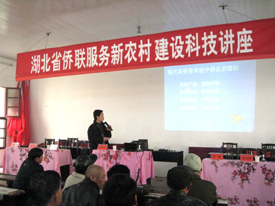 中新網(wǎng)12月4日電 據(jù)湖北僑聯(lián)網(wǎng)消息,近日,湖北省僑聯(lián)組織的服務(wù)新農(nóng)村建設(shè)“科技講座”活動,分別在老河口和天門市舉辦。此次活動,邀請了華中農(nóng)業(yè)大學(xué)植物科技學(xué)院和水產(chǎn)學(xué)院5名專家教授,分別就“梨的主要病蟲害及其防治”、“果樹優(yōu)質(zhì)栽培技術(shù)及實際操作”、“水產(chǎn)養(yǎng)殖和除病”等方面的知識進行了專題講座,來自老河口市和天門市各鄉(xiāng)鎮(zhèn)共160多名農(nóng)業(yè)站長、技術(shù)員和養(yǎng)殖專業(yè)戶聽取了科技講座。此次活動,受到了當?shù)剞r(nóng)民的熱烈歡迎。