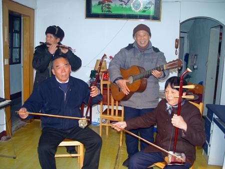 中新網(wǎng)12月25日電 據(jù)浙江僑聯(lián)網(wǎng)消息,近日,浙江省余姚市丈亭鎮(zhèn)80多歲的僑眷王關(guān)心在家舉行了迎新音樂(lè)會(huì)。二胡、電子琴等各種樂(lè)器的演奏聲吸引了許多村民和一些退休教師前來(lái)聆聽(tīng)并參與其中,其樂(lè)融融的樂(lè)曲聲中,體現(xiàn)了新農(nóng)村文化生活的不斷豐富。