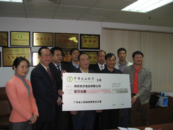 中新網(wǎng)1月22日電 據(jù)廣東僑網(wǎng)消息,廣東省僑辦主任吳銳成率領(lǐng)省、市僑辦一行8人于2010年1月20日上午赴廣州的僑資企業(yè)——南聯(lián)航空食品有限公司開展“送溫暖”活動,并代表省政府將2萬元慰問金送給該企業(yè)。