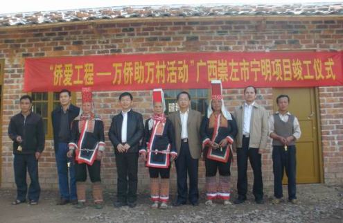 中新網(wǎng)1月22日電 據(jù)崇左市外僑辦消息,1月19日上午,廣西壯族自治區(qū)崇左市寧明縣瑯零屯舉行“僑愛(ài)工程—萬(wàn)僑助萬(wàn)村”項(xiàng)目竣工暨“僑愛(ài)新村”揭牌儀式,自治區(qū)僑辦業(yè)務(wù)處有關(guān)負(fù)責(zé)人、崇左市外僑辦主任嚴(yán)耀新應(yīng)邀出席了儀式。