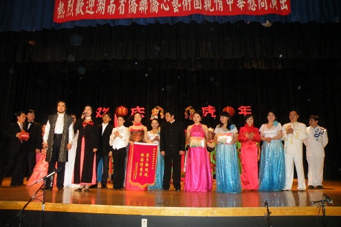 在近3個小時的演出中,湖南省僑聯(lián)僑心藝術(shù)團(tuán)先后表演了23個節(jié)目,包括合唱、獨唱、服飾表演、小品、舞蹈等。其中《洞庭魚米鄉(xiāng)》曾獲中國音樂金鐘獎首屆合唱比賽金獎第一名、獲2008年第5屆世界合唱比賽銀獎!