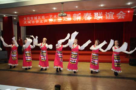 據(jù)藝術(shù)團(tuán)團(tuán)長(zhǎng)周玉萍介紹,“僑之聲”藝術(shù)團(tuán)成立四年來(lái),始終堅(jiān)持以僑為本、為僑服務(wù)的工作理念。在大同市僑聯(lián)的正確領(lǐng)導(dǎo)下,經(jīng)常下基層以文藝的形式宣傳《僑法》、慰問(wèn)僑胞,僅2009年參加的全國(guó)和省市舉辦的文藝活動(dòng)達(dá)6場(chǎng),并獲得有關(guān)部委的表彰。在新中國(guó)成立60周年之際掀起的大唱“紅歌”活動(dòng)中,藝術(shù)團(tuán)為基層演出并現(xiàn)場(chǎng)輔導(dǎo)更是高達(dá)20多場(chǎng)。領(lǐng)導(dǎo)的支持、政治上的鼓勵(lì)極大的帶動(dòng)了歸僑僑眷的工作熱情。
