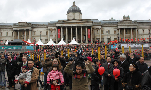 中新網(wǎng)2月22日電 2月21日中午,近三十萬英國華僑華人及當?shù)孛癖妳R集在倫敦特拉法加廣場,共同觀賞了由中國國務院僑辦副主任任啟亮率領的“文化中國•四海同春”藝術團的精彩演出。中央民族歌舞團極具民族特色的歌舞和著名歌唱家劉斌、呂薇、桐瑤的傾情表演深深地打動了數(shù)以十萬計的觀眾,使廣大旅英僑胞在春寒料峭中感受到了來自祖(籍)國的溫暖,也使在場的外國朋友領略到中華文化的魅力。