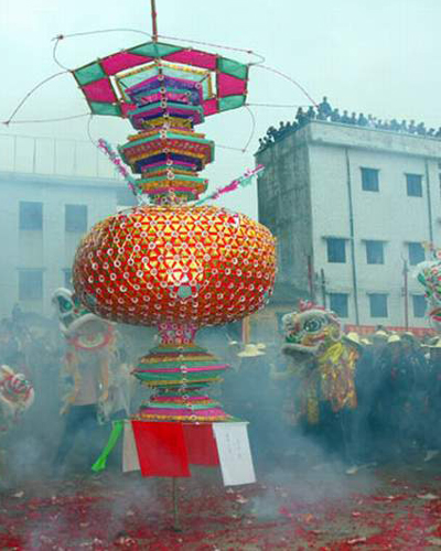“泮村燈會(huì)”始于明朝英宗天頤八年(公元1464年,農(nóng)歷甲申年)正月十三日,至今500多年。每年農(nóng)歷正月十三,開(kāi)平市水口鎮(zhèn)泮村舉行舞燈盛會(huì),今年當(dāng)?shù)赜瓉?lái)了第十一屆舞燈盛會(huì)。當(dāng)天上午,3個(gè)三米多高的大花燈,以羅傘彩旗開(kāi)路,龍獅共舞,鞭炮齊鳴,巡游于泮村48條自然村,全過(guò)程包括扎燈、送燈、起燈、舞燈、打燈,故擇其名為“泮村燈會(huì)”。