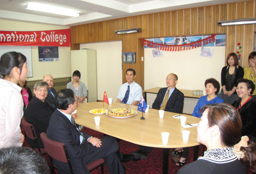 同日,趙陽還走訪了華人開辦的基督城國際學院,與該院負責人及師生進行了座談交流。