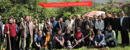 福建省僑聯(lián)副主席楊崢嶸、謝小建、福州市人大副主任陳樹(shù)雄、市政協(xié)副主席陳震宙、福州市僑聯(lián)黨組書(shū)記、主席藍(lán)桂蘭、福州市僑聯(lián)副主席、鼓樓區(qū)僑聯(lián)主席李盛玉、永泰縣僑聯(lián)黨支部書(shū)記汪秀錦等領(lǐng)導(dǎo)與青年委員和僑聯(lián)機(jī)關(guān)干部共同栽下近百株的桃樹(shù)和桂花樹(shù),并細(xì)心地為每棵樹(shù)苗系上簽有自己名字的綠葉圖形標(biāo)識(shí),寓意僑聯(lián)事業(yè)與樹(shù)苗一同成長(zhǎng)壯大、煥發(fā)生機(jī)活力。