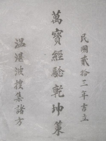 2006年,美國(guó)加州的李氏家族曾向中山華僑歷史博物館捐贈(zèng)了一本珍貴的中醫(yī)方書《萬寶經(jīng)驗(yàn)乾坤策(溫湛波搜集諸方)》。這本書由溫湛波先生編成于1934年(民國(guó)二十三年),記錄了他搜集的800余個(gè)民間驗(yàn)方,見證了民國(guó)時(shí)期旅居美國(guó)加州的中國(guó)農(nóng)工使用中醫(yī)藥治病救人的不懈努力。