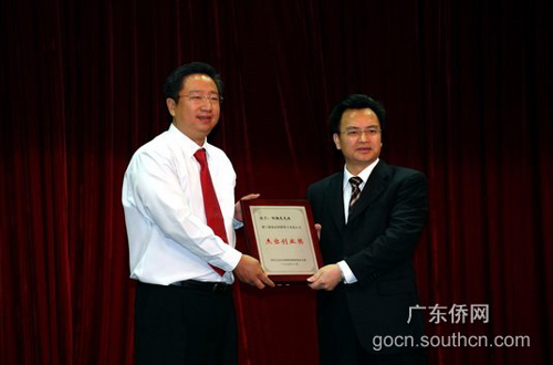 隨后,廣東省副省長(zhǎng)萬(wàn)慶良給盧智俊、朱勁松、譚文、姜小波、伍懿聰、何正宇、胡勝發(fā)、姬尚義、鄒勝龍、王偉東、楊淑偉等11位獲得國(guó)務(wù)院僑辦評(píng)選表彰的“第二屆百名華僑華人專(zhuān)業(yè)人士杰出創(chuàng)業(yè)獎(jiǎng)”的杰出創(chuàng)業(yè)人士頒獎(jiǎng)!敖艹鰟(chuàng)業(yè)獎(jiǎng)”是國(guó)務(wù)院僑辦為表彰在華創(chuàng)業(yè)發(fā)展的優(yōu)秀華僑華人專(zhuān)業(yè)人士,促進(jìn)海外人才回國(guó)創(chuàng)業(yè)創(chuàng)新,進(jìn)一步激發(fā)海外僑胞參與國(guó)家建設(shè)的積極性,從2005年起在全國(guó)僑務(wù)系統(tǒng)開(kāi)展的評(píng)選表彰活動(dòng)。廣東省的入選率在全國(guó)各省市排名中位居榜首。
