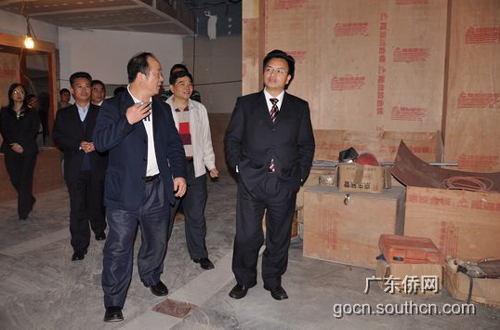中新網(wǎng)3月30日電 據(jù)廣東僑網(wǎng)消息,3月26日下午,在出席廣東省僑辦召開的“杰出華僑華人專業(yè)人士創(chuàng)新座談會”后,廣東省副省長萬慶良在廣東省政府副秘書長劉曉捷、廣東省僑辦主任吳銳成的陪同下,參觀廣東華僑歷史陳列,并視察廣東華僑博物館二期陳展施工現(xiàn)場,指導(dǎo)推動廣東華僑博物館建設(shè)。