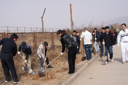 中新網(wǎng)4月13日電 據(jù)中國僑聯(lián)網(wǎng)站消息,2010年4月9日,春風(fēng)和煦,綠柳輕搖,正是植樹的黃金時(shí)節(jié)。中國僑聯(lián)45名干部職工在中國僑聯(lián)副主席李祖沛的帶領(lǐng)下,赴河北省懷來縣官廳華僑農(nóng)場(chǎng)義務(wù)植樹。