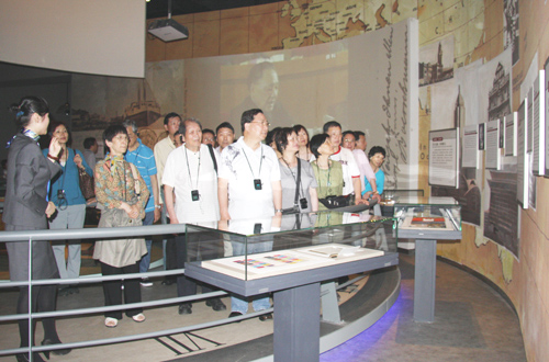 當(dāng)天下午,胡運熹一行一踏上老家駱駝這塊土地就感到非常興奮,在鎮(zhèn)海新城管委會,聽取了新城規(guī)劃介紹,觀看了沙盤,更是深有感觸。隨后,胡運熹一行來到寧波幫博物館,走過“時光甬道”,先后參觀了寧波幫博物館序廳、篳路藍(lán)縷、建功立業(yè)、赤字情懷、群星璀璨和薪火永傳等展區(qū)!靶“撞,嫩艾艾,丈夫出門到上!碑(dāng)解說員用寧波話朗讀出一句句寧波民謠時,構(gòu)起了他們童年時的記憶,海外僑領(lǐng)們熱烈鼓掌,并對寧波商幫文化的精髓與傳承表示稱贊。胡運熹一行來到鎮(zhèn)海應(yīng)行久外語實驗學(xué)校, 在參觀了體藝館、多媒體教室、語音實驗室等處后,胡運熹連連感慨校園的巨大變化。同時他對該!盀榱艘磺袑W(xué)生的健康成長,促進(jìn)每個學(xué)生的最優(yōu)發(fā)展”的教學(xué)理念表示由衷的贊賞。他說,鎮(zhèn)海在培養(yǎng)人才方面,有這樣好的學(xué)校、這樣的優(yōu)秀的老師,我們的下一代將會有更好的遠(yuǎn)景,我們的祖國也會給世界一個全新的面貌。