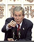 應(yīng)國家主席江澤民的邀請,美國總統(tǒng)布什于2月21日和22日對中國進(jìn)行工作訪問。21日中午,江澤民與布什舉行正式會談。會談結(jié)束后,中美兩國首腦共同會見記者。江澤民表示,他與布什總統(tǒng)的會談達(dá)成許多重要共識,取得了積極成果。江澤民說,雙方在會談中回顧了中美關(guān)系30年的歷程,深入討論了當(dāng)前國際形勢。一致認(rèn)為中美作為世界上有重要影響的兩個國家,應(yīng)加強(qiáng)對話與合作,妥善處理分歧,共同推動中美建設(shè)性合作關(guān)系進(jìn)一步向前發(fā)展。