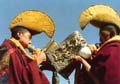喇嘛們?cè)谑⒋蠊?jié)日吹奏法螺