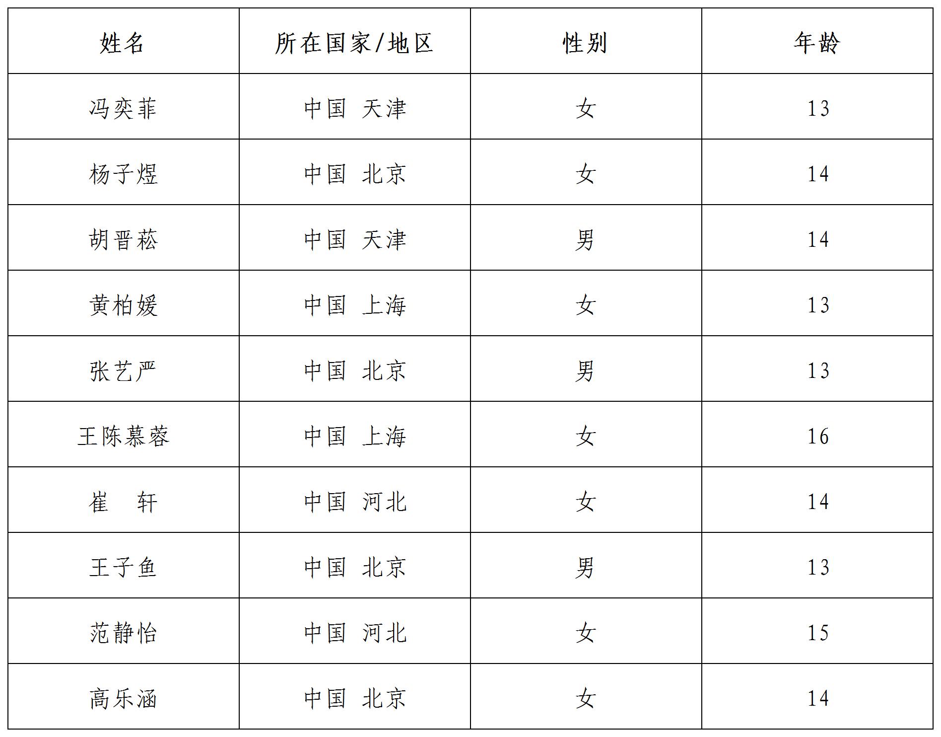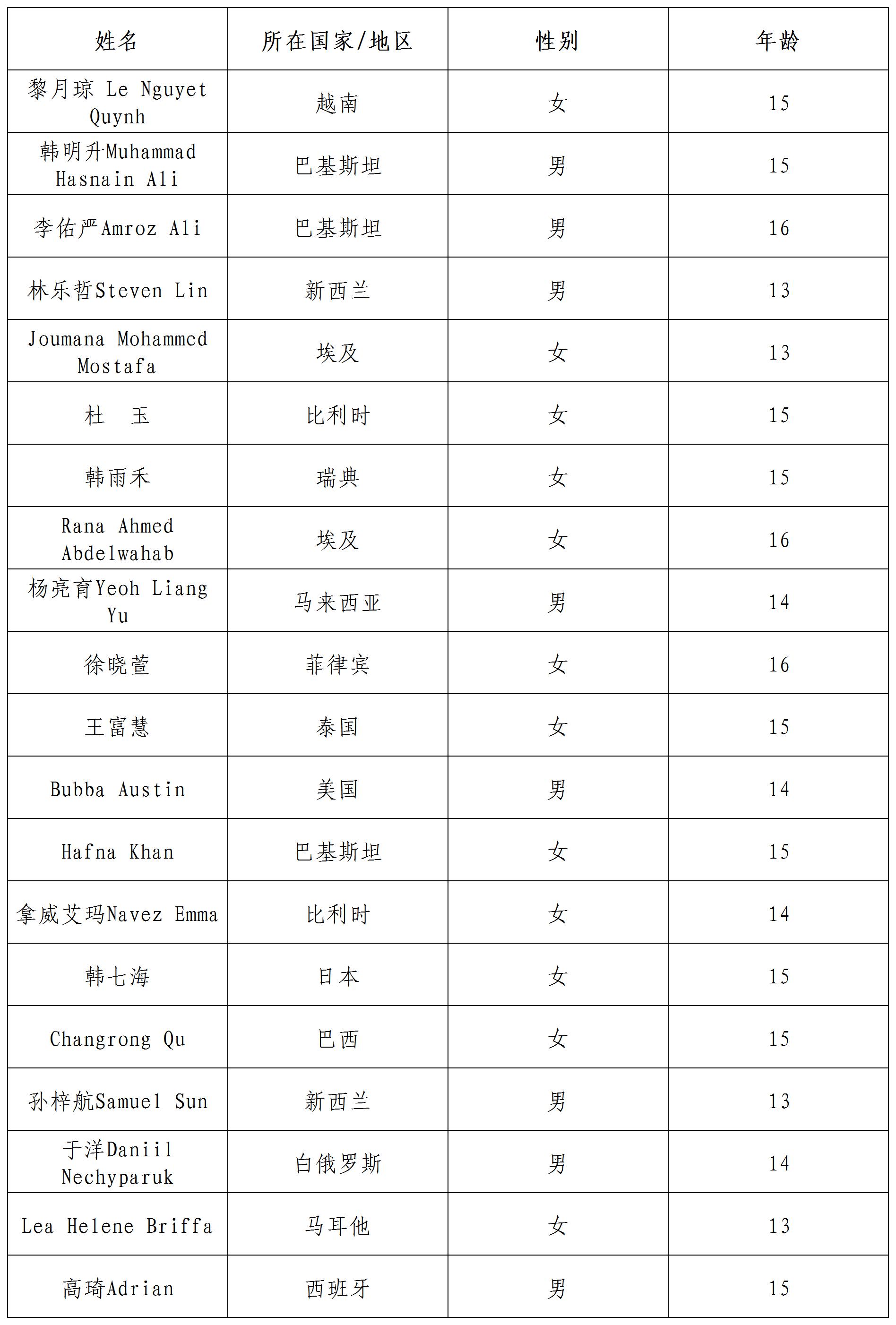 公示時(shí)間:即日起至2022年2月1日北京時(shí)間24:00 咨詢方式: 郵箱:yszxhd@sclc2017.org 聯(lián)系電話:15810563423 如有異議,請于公示期間致電或郵件咨詢。本活動(dòng)最終解釋權(quán)歸中國宋慶齡青少年科技文化交流中心所有。 備注:標(biāo)注國家以參與者報(bào)名時(shí)駐在國為準(zhǔn)。